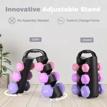 Set of 2 Neoprene Coated Dumbbells with Adjustable Rack – Anti-Slip & Anti-Roll Design